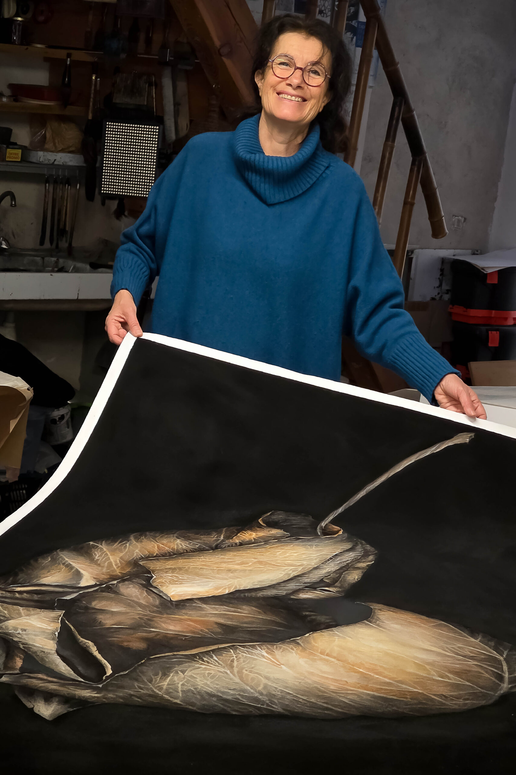 Graphiste-graveur de formation, Valérie BOURRET a choisi, depuis 2017, d’orienter son travail artistique sur le thème de la botanique imaginaire. L’artiste imagine des rapports de parentés et d’alliances entre le végétal, l’être humain et le monde qui l’entoure. Ainsi, elle trouve et partage la possibilité de s’approprier le monde dans sa fragilité /sa violence /sa beauté, en créant une nouvelle organisation, un ordre apparent, une cohérence qui relève du Bon sens. Sa résidence sera pour elle l’occasion parfaite de centrer ses recherches sur le château de Montmaur en tant que centre de repos pour prisonniers évadés ou libérés, sur le résistant Antoine Mauduit (1902-1945), ou encore sur la création du réseau de Résistance “La Chaîne”.