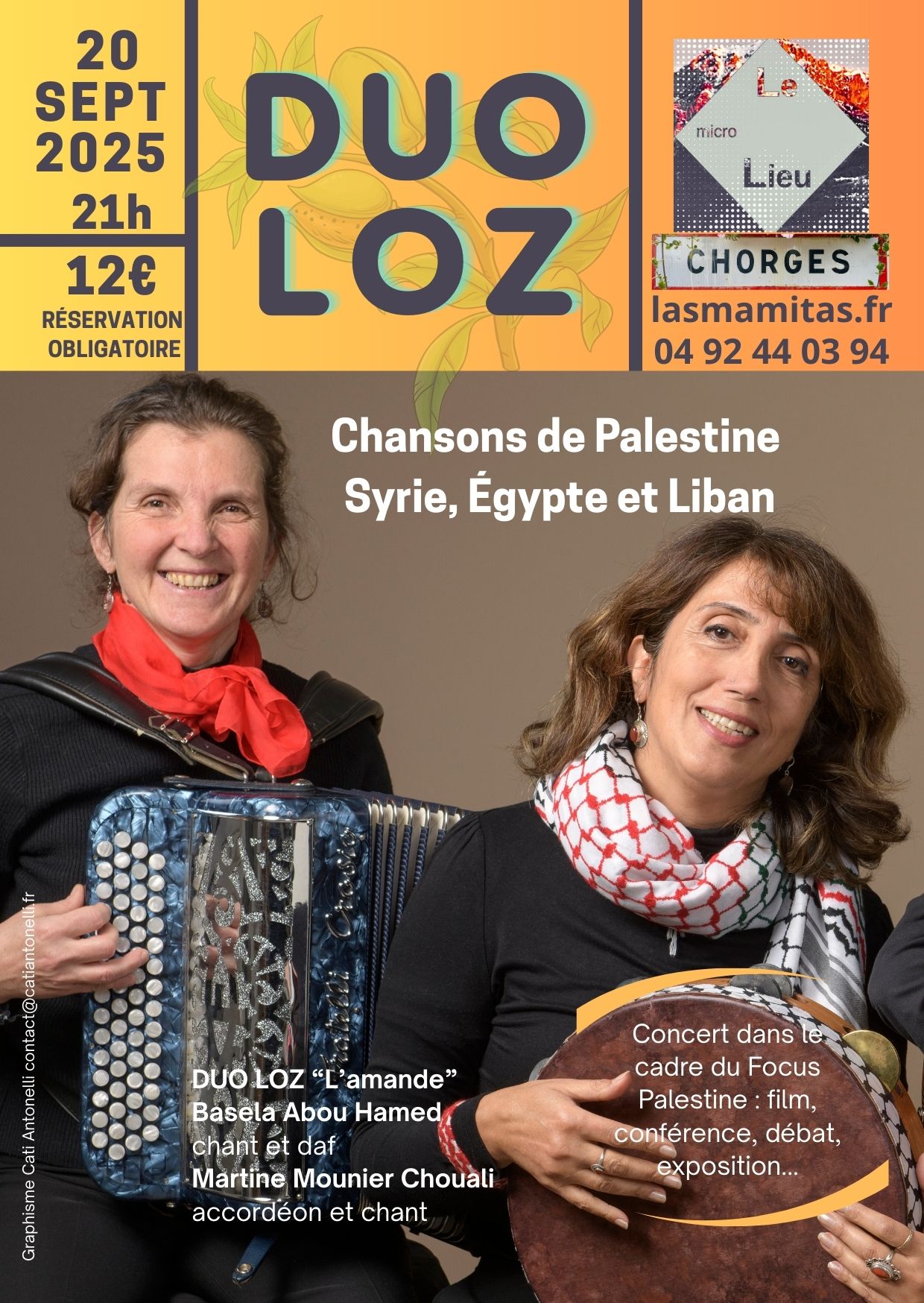 Le duo Loz, l’amande verte, est une invitation au voyage en Moyen Orient, à travers des chansons de Palestine,de Syrie, d’Égypte et du Liban. La chanson folklorique palestinienne est un des éléments importants du patrimoine, qui exprime l’Histoire de la Palestine, la question palestinienne, les lieux de douleur et les stations de souffrance que sont peuple a vécus. Elle dépeint les coutumes, les traditions, les modes de vie et la résistancedu peuple depuis le début de l’occupation britannique, puis sioniste et jusqu’à aujourd’hui.