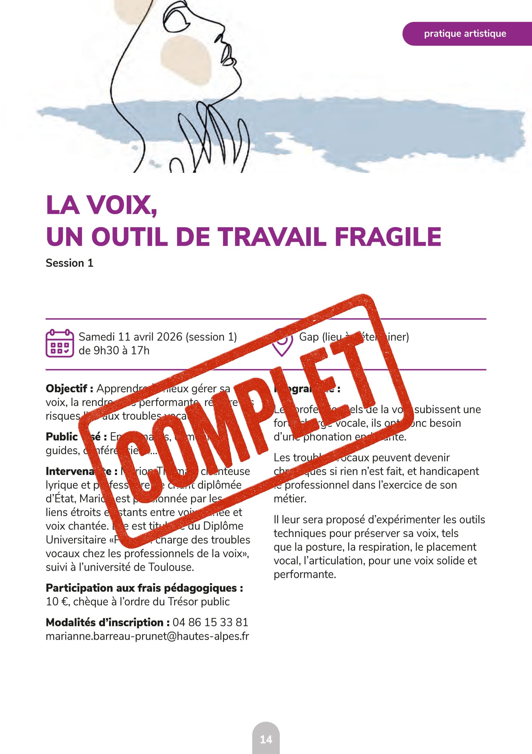 ModalitĂ©s dâinscription : 04 86 15 33 81 â marianne.barreau-prunet@hautes-alpes.fr