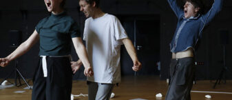C’est avec beaucoup de tendresse que ces trois comédiens aux costumes fièrement portés à l’envers, toutes coutures dehors – comme s’ils voulaient retourner notre présent comme un gant – convoquent “Le Beau Monde”, ce monde englouti. à travers les fragments de mémoire qu’ils nous restituent de façon cocassement appliquée, c’est une histoire populaire d’aujourd’hui qu’ils écrivent.