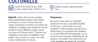 Public visé : Médiateurs culturels, guides conférenciers, chargés des publics, guides accompagnateurs touristiques.