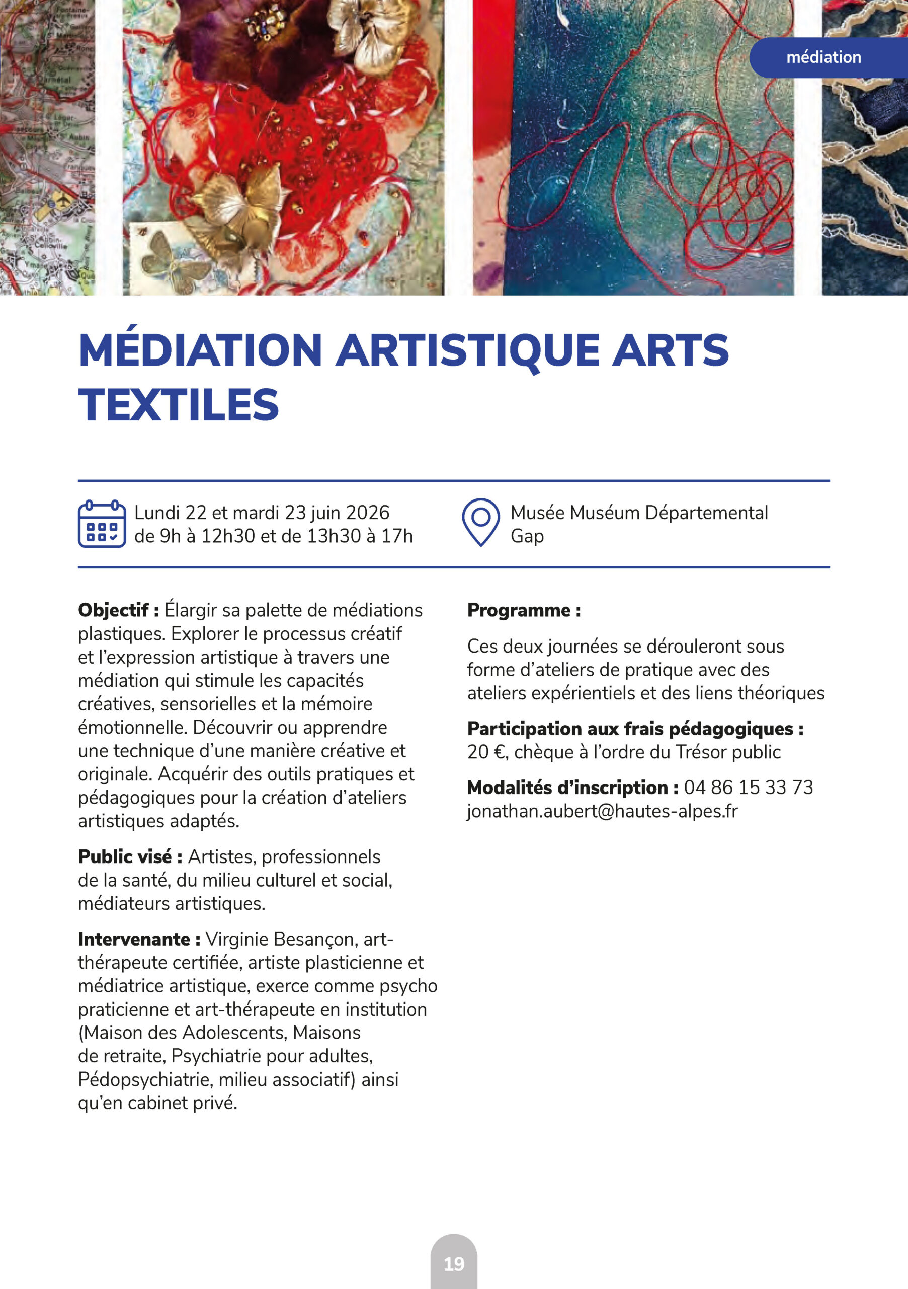 Modalités d’inscription : 04 86 15 33 73 – jonathan.aubert@hautes-alpes.fr
