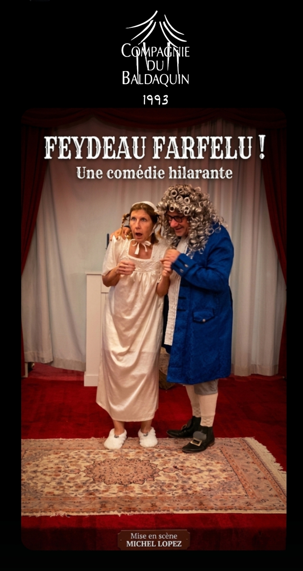 Après” FABULAS” d’après Jean de LA FONTAINE ; ” LE MÉDECIN MALGRÉ LUI ” de MOLIÈRE ; VAÏ ALPHONSE ! une œuvre basée sur l’œuvre d’ ALPHONSE DAUDET ; les voici de retour avec FEYDEAU FARFELU ! de GEORGES FEYDEAU , adaptation toute libre de la pièce FEU LA MÈRE DE MADAME .